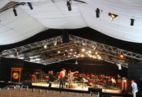 With all of this in mind Nagano and the festival organizers prepared themselves to improve on nature by bringing along a sound system. All the instruments are miked and a sound engineer at the back of the tent tries to mix the sound as best he can to produce a pleasing effect. At the Friday afternoon dress rehearsal for “Norma”, the result was far from pleasing. In fact, it was harsh and unmusical. But that is why orchestras (and sound engineers) have rehearsals. Last night the sound quality was much improved.