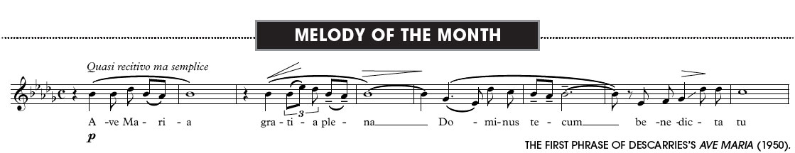 Those influences shine through in Descarries’s sacred works written for the Saint-Viateur d’Outremont Church, where he served as choirmaster from 1938 until his death in 1958. He composed major works closely tied to liturgical action, at a time when priests, their backs towards the congregation, still celebrated mass in Latin. This was before Vatican II. This corpus of religious music, which features on a recorded album for the first time, includes five motets for solo voice and organ as well as six choral works, including two masses for choirs of equal voices.