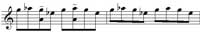 Une autre façon de créer un sentiment de mystère est l’utilisation de rythmes ou de notes répétées, comme dans l’exemple qui suit, début du thème musical de la série télévisée Twilight Zone. Les notes répétées nous réconfortent, tout va bien, la vie est belle. Soudain, un accord sur lequel l’orchestre fait un crescendo suivi d’un diminuendo et voilà, la peur s’installe (voir exemple 2).